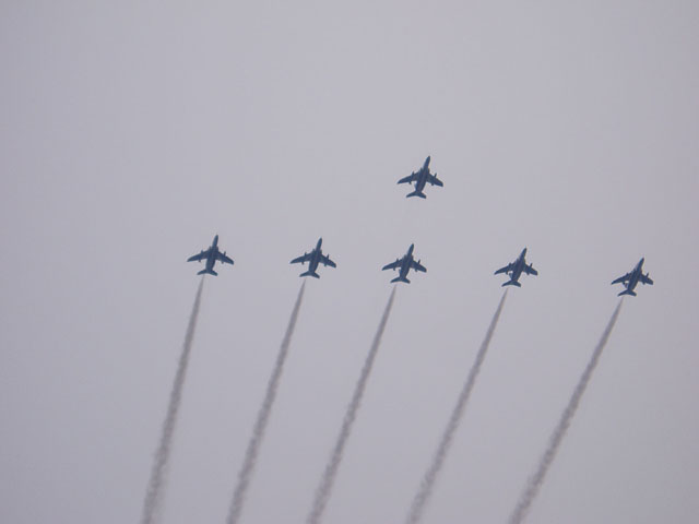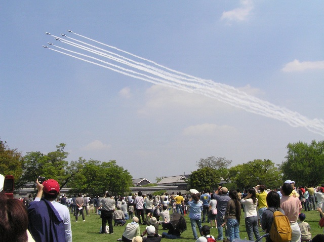 予定通り、ブルーインパルスのテスト飛行が熊本城上空で行われました。