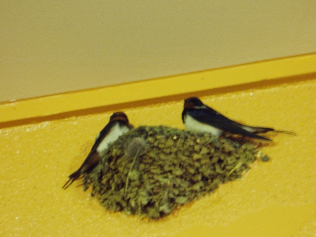 近くの弁当屋さんに燕が巣をつくっていました