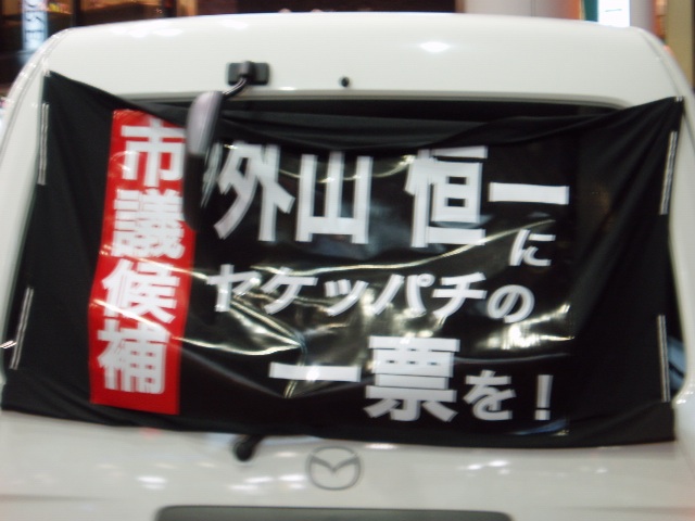 今日、とうとう2chやyoutubeで有名(笑)な「外山恒一候補」を見てきました。